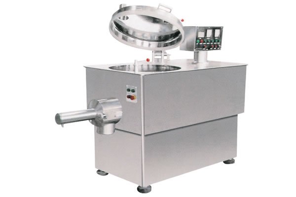 粉体物料与粘合剂在圆筒形容器中由底部混合浆充分混合成湿润软材,然后由侧置的高速粉碎桨切割成均匀的湿颗粒。